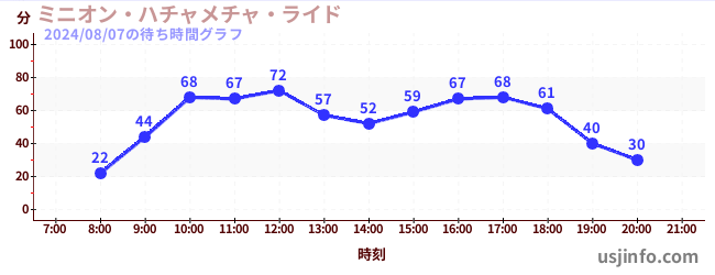 • ミニオン・ハチャメチャ・ライド$B$N(B2024年08月07日の待ち時間