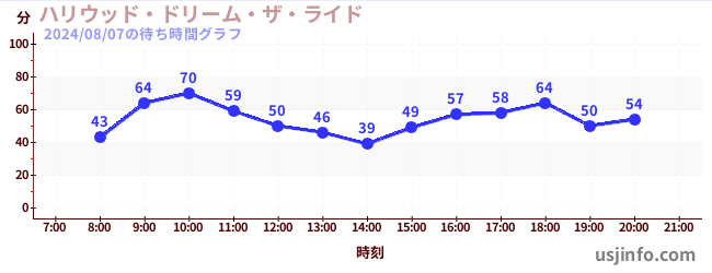 • ハリウッド・ドリーム・ザ・ライド$B$N(B2024年08月07日の待ち時間