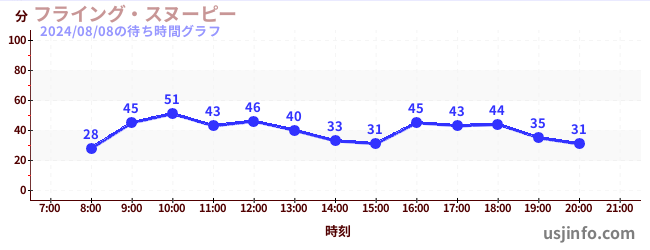 • フライング・スヌーピー$B$N(B2024年08月08日の待ち時間