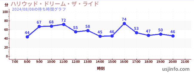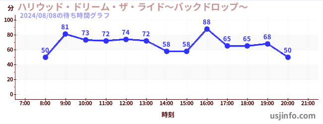 • ハリウッド・ドリーム・ザ・ライド〜バックドロップ〜$B$N(B2024年08月08日の待ち時間