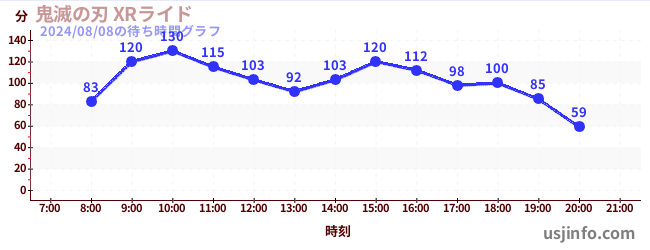• 鬼滅の刃 XRライド$B$N(B2024年08月08日の待ち時間