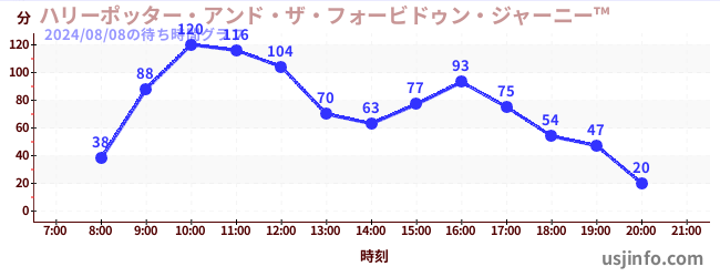 • ハリーポッター・アンド・ザ・フォービドゥン・ジャーニー™$B$N(B2024年08月08日の待ち時間