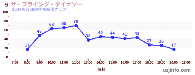 • ザ・フライング・ダイナソー$B$N(B2024年08月08日の待ち時間