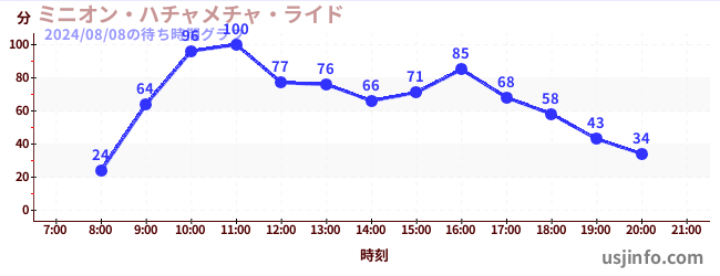 • ミニオン・ハチャメチャ・ライド$B$N(B2024年08月08日の待ち時間