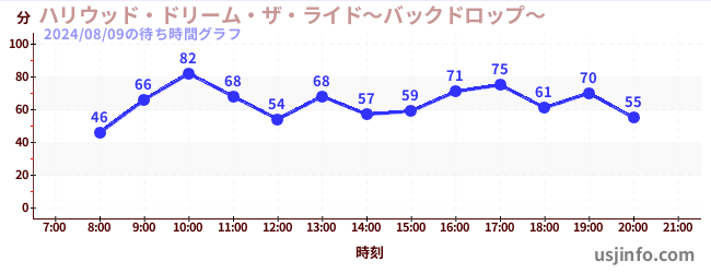 • ハリウッド・ドリーム・ザ・ライド〜バックドロップ〜$B$N(B2024年08月09日の待ち時間