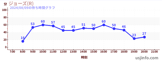 • ジョーズ(R)$B$N(B2024年08月09日の待ち時間