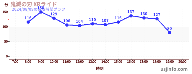 • 鬼滅の刃 XRライド$B$N(B2024年08月09日の待ち時間