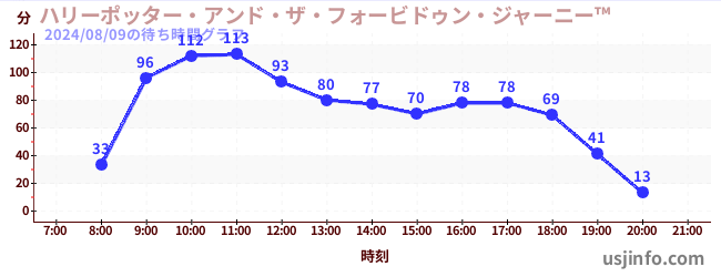 • ハリーポッター・アンド・ザ・フォービドゥン・ジャーニー™$B$N(B2024年08月09日の待ち時間