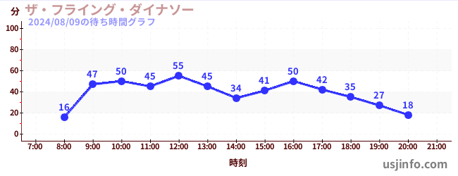 • ザ・フライング・ダイナソー$B$N(B2024年08月09日の待ち時間