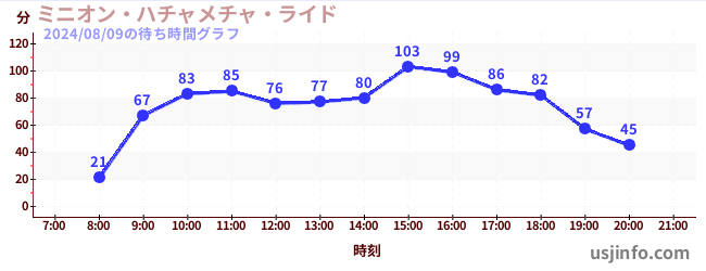 • ミニオン・ハチャメチャ・ライド$B$N(B2024年08月09日の待ち時間
