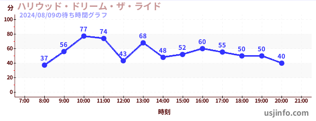 • ハリウッド・ドリーム・ザ・ライド$B$N(B2024年08月09日の待ち時間