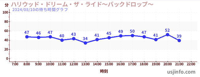 • ハリウッド・ドリーム・ザ・ライド〜バックドロップ〜$B$N(B2024年08月10日の待ち時間