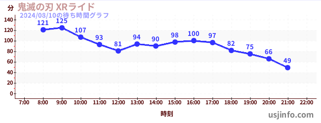 • 鬼滅の刃 XRライド$B$N(B2024年08月10日の待ち時間