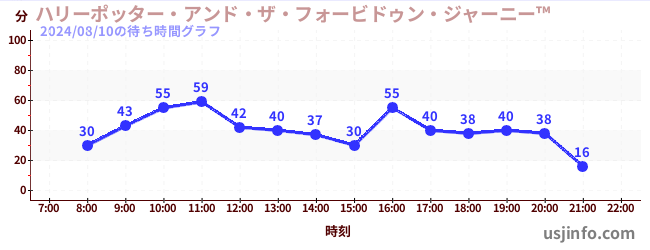 • ハリーポッター・アンド・ザ・フォービドゥン・ジャーニー™$B$N(B2024年08月10日の待ち時間