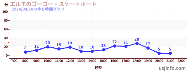• エルモのゴーゴー・スケートボード$B$N(B2024年08月10日の待ち時間