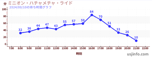 • ミニオン・ハチャメチャ・ライド$B$N(B2024年08月10日の待ち時間