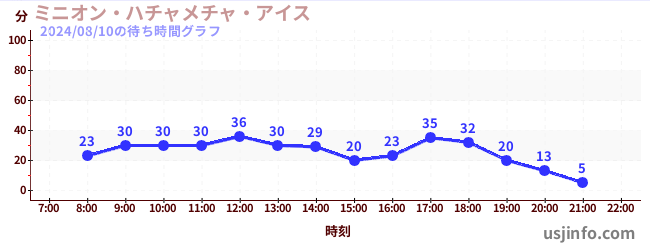 • ミニオン・ハチャメチャ・アイス$B$N(B2024年08月10日の待ち時間