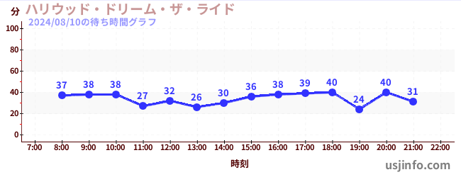 • ハリウッド・ドリーム・ザ・ライド$B$N(B2024年08月10日の待ち時間