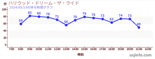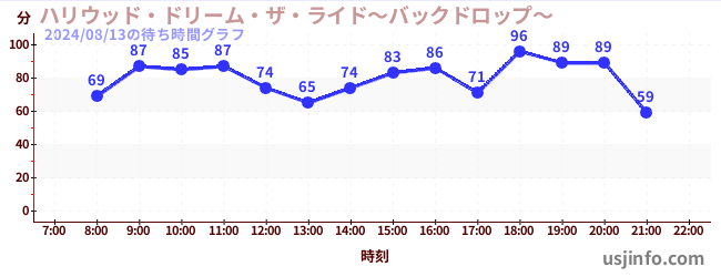 • ハリウッド・ドリーム・ザ・ライド〜バックドロップ〜$B$N(B2024年08月13日の待ち時間