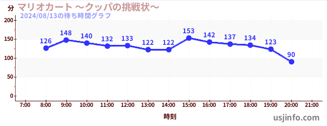 • マリオカート ~クッパの挑戦状~$B$N(B2024年08月13日の待ち時間