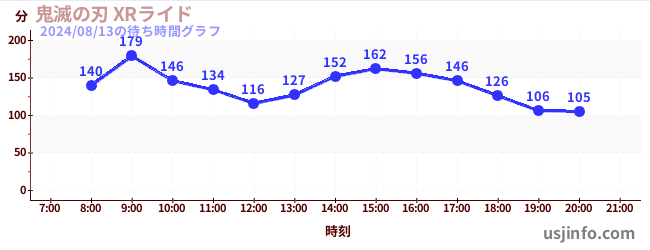 • 鬼滅の刃 XRライド$B$N(B2024年08月13日の待ち時間