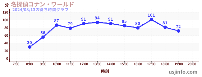 • 名探偵コナン・ワールド$B$N(B2024年08月13日の待ち時間
