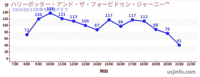 • ハリーポッター・アンド・ザ・フォービドゥン・ジャーニー™$B$N(B2024年08月13日の待ち時間