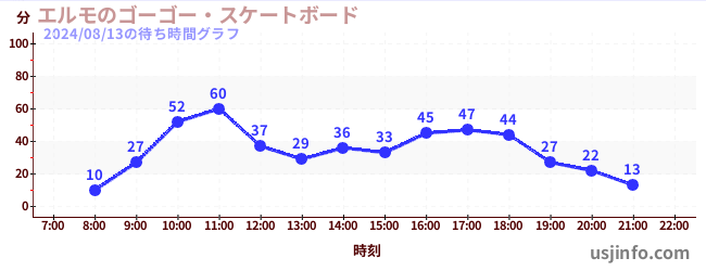 • エルモのゴーゴー・スケートボード$B$N(B2024年08月13日の待ち時間