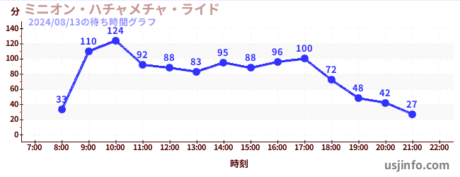 • ミニオン・ハチャメチャ・ライド$B$N(B2024年08月13日の待ち時間