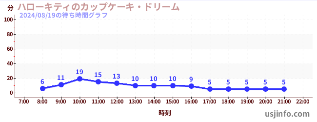 • ハローキティのカップケーキ・ドリーム$B$N(B2024年08月19日の待ち時間