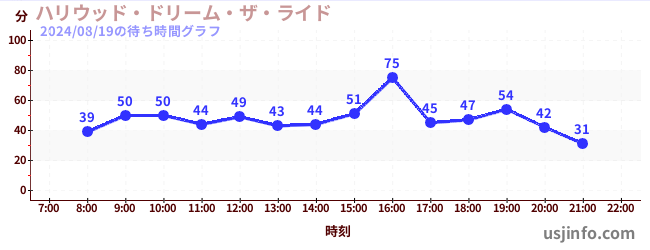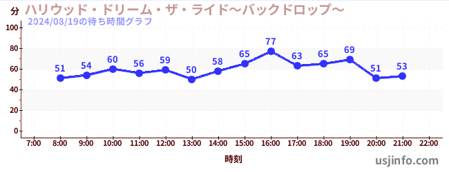 • ハリウッド・ドリーム・ザ・ライド〜バックドロップ〜$B$N(B2024年08月19日の待ち時間