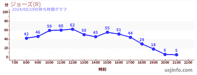 • ジョーズ(R)$B$N(B2024年08月19日の待ち時間