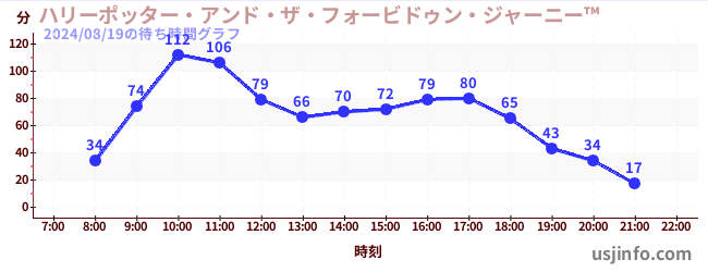 • ハリーポッター・アンド・ザ・フォービドゥン・ジャーニー™$B$N(B2024年08月19日の待ち時間