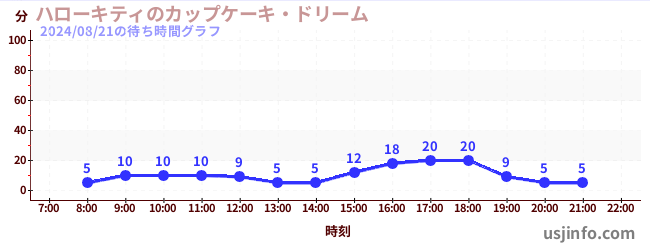 • ハローキティのカップケーキ・ドリーム$B$N(B2024年08月21日の待ち時間
