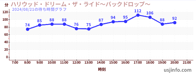 • ハリウッド・ドリーム・ザ・ライド〜バックドロップ〜$B$N(B2024年08月21日の待ち時間