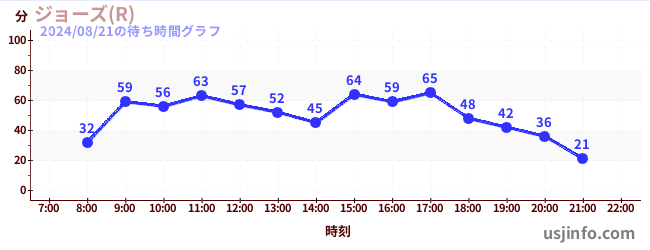 • ジョーズ(R)$B$N(B2024年08月21日の待ち時間