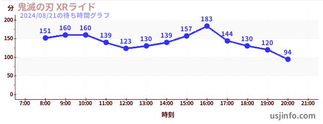 • 鬼滅の刃 XRライド$B$N(B2024年08月21日の待ち時間