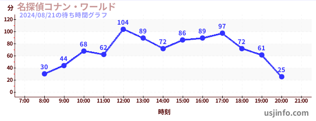 • 名探偵コナン・ワールド$B$N(B2024年08月21日の待ち時間