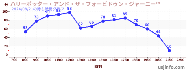• ハリーポッター・アンド・ザ・フォービドゥン・ジャーニー™$B$N(B2024年08月21日の待ち時間