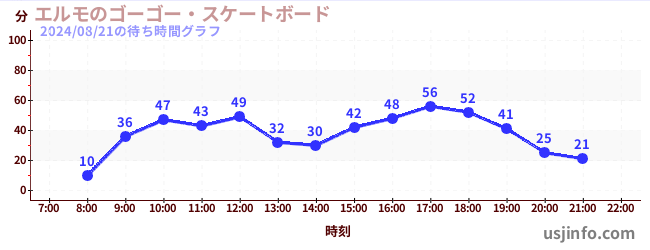 • エルモのゴーゴー・スケートボード$B$N(B2024年08月21日の待ち時間