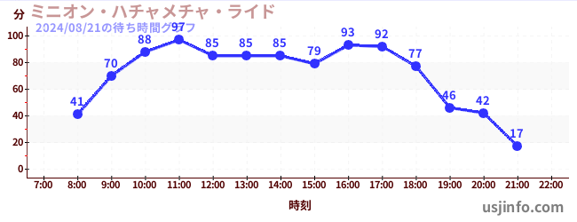 • ミニオン・ハチャメチャ・ライド$B$N(B2024年08月21日の待ち時間