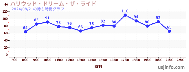 • ハリウッド・ドリーム・ザ・ライド$B$N(B2024年08月21日の待ち時間