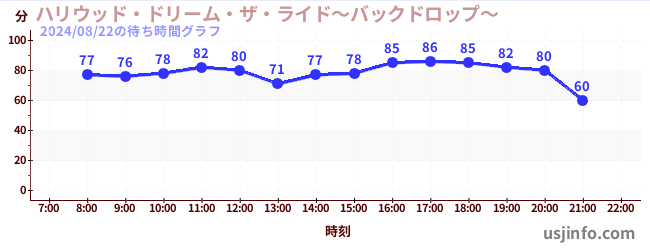 • ハリウッド・ドリーム・ザ・ライド〜バックドロップ〜$B$N(B2024年08月22日の待ち時間