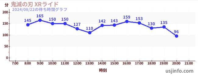 • 鬼滅の刃 XRライド$B$N(B2024年08月22日の待ち時間