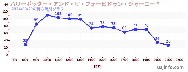 • ハリーポッター・アンド・ザ・フォービドゥン・ジャーニー™$B$N(B2024年08月22日の待ち時間