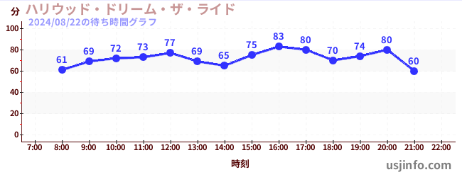 • ハリウッド・ドリーム・ザ・ライド$B$N(B2024年08月22日の待ち時間