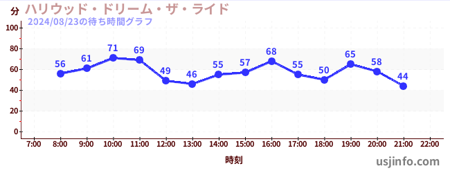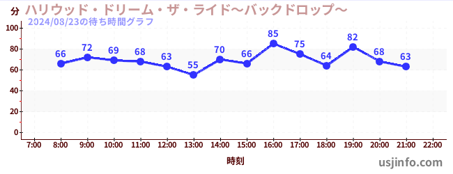 • ハリウッド・ドリーム・ザ・ライド〜バックドロップ〜$B$N(B2024年08月23日の待ち時間