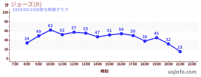 • ジョーズ(R)$B$N(B2024年08月23日の待ち時間