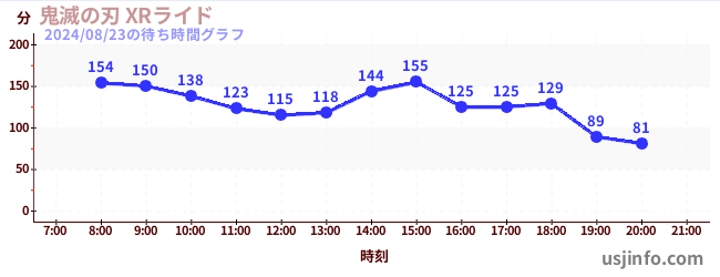 • 鬼滅の刃 XRライド$B$N(B2024年08月23日の待ち時間