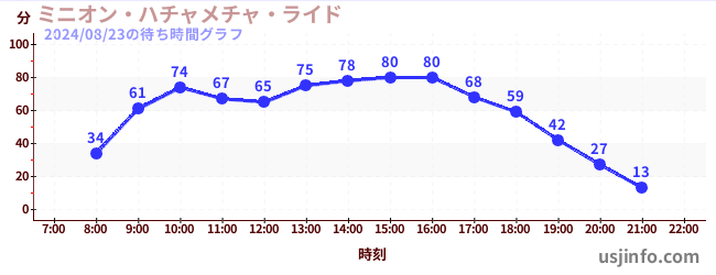 • ミニオン・ハチャメチャ・ライド$B$N(B2024年08月23日の待ち時間